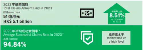 理賠是保險服務的核心,每年的理賠報告不僅展示了行業趨勢,也反映了各家公司的服務水平。根據宏利保險2023年理賠數據顯示,其賠付總額高達51億港元,平均成功索賠率更是達到了94.84%。